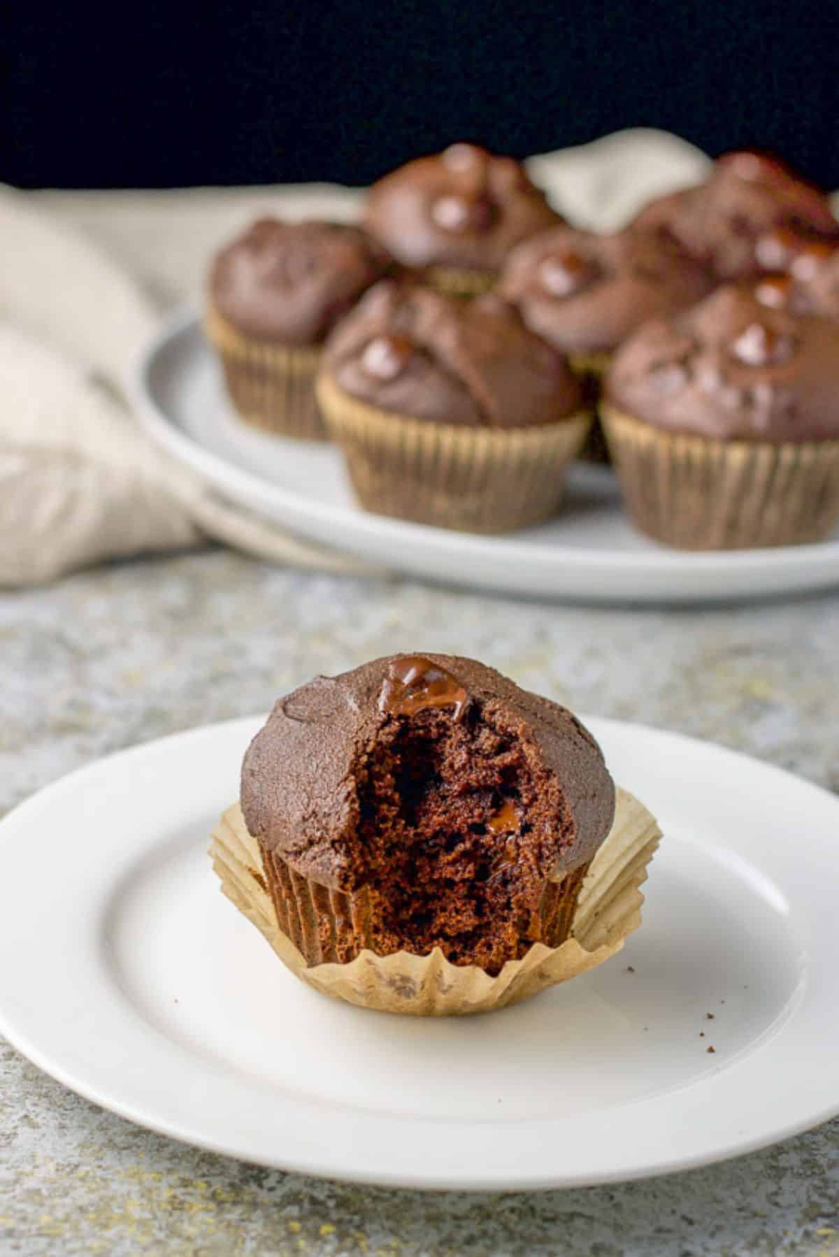 These chocolate muffins are so delicious and decadent! I love them.