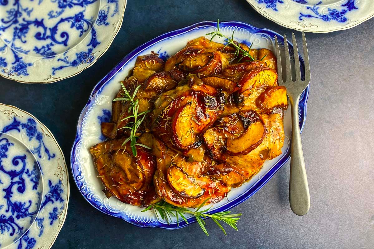 In our one-pan creation, tender chicken thighs, peaches, balsamic vinegar, maple syrup, and rosemary unite to form the Low FODMAP Balsamic Chicken with Peaches. If you adored the former, this variation is a must-try—provided you’ve completed your sorbitol challenge. Get the Recipe: Balsamic Chicken with Peaches