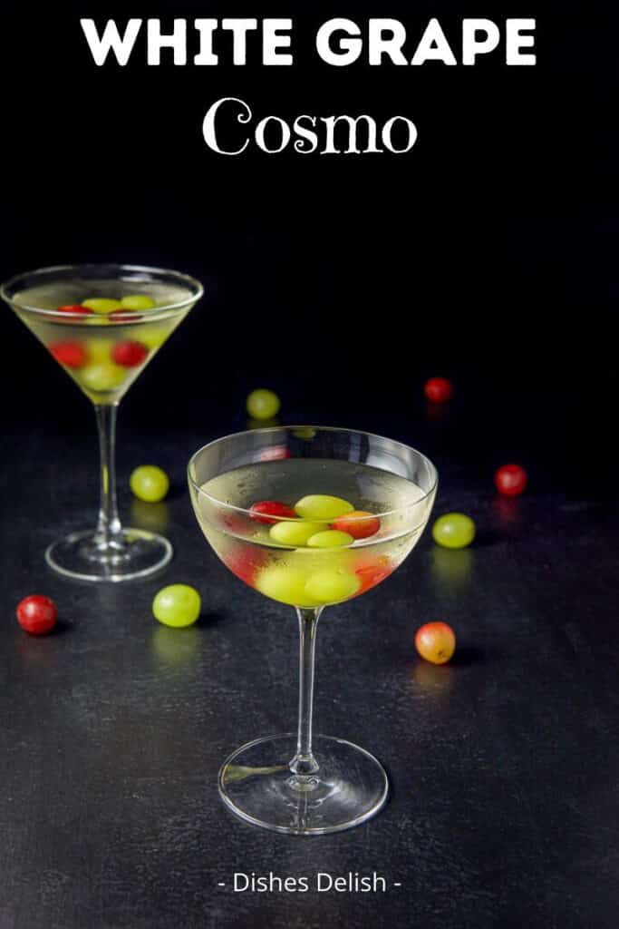 Place as many grapes as you like in each white grape cosmo. For this post, I used 3 white grapes and 2 red grapes in each drink.